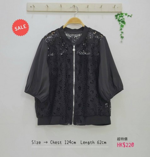 日本高質鏤空織花 x 珠珠點綴拉鏈外套仔