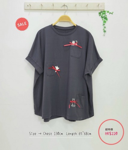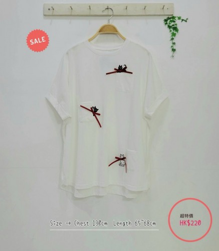 日本2色立體蝴蝶結 x cat cat圖案棉質 Top